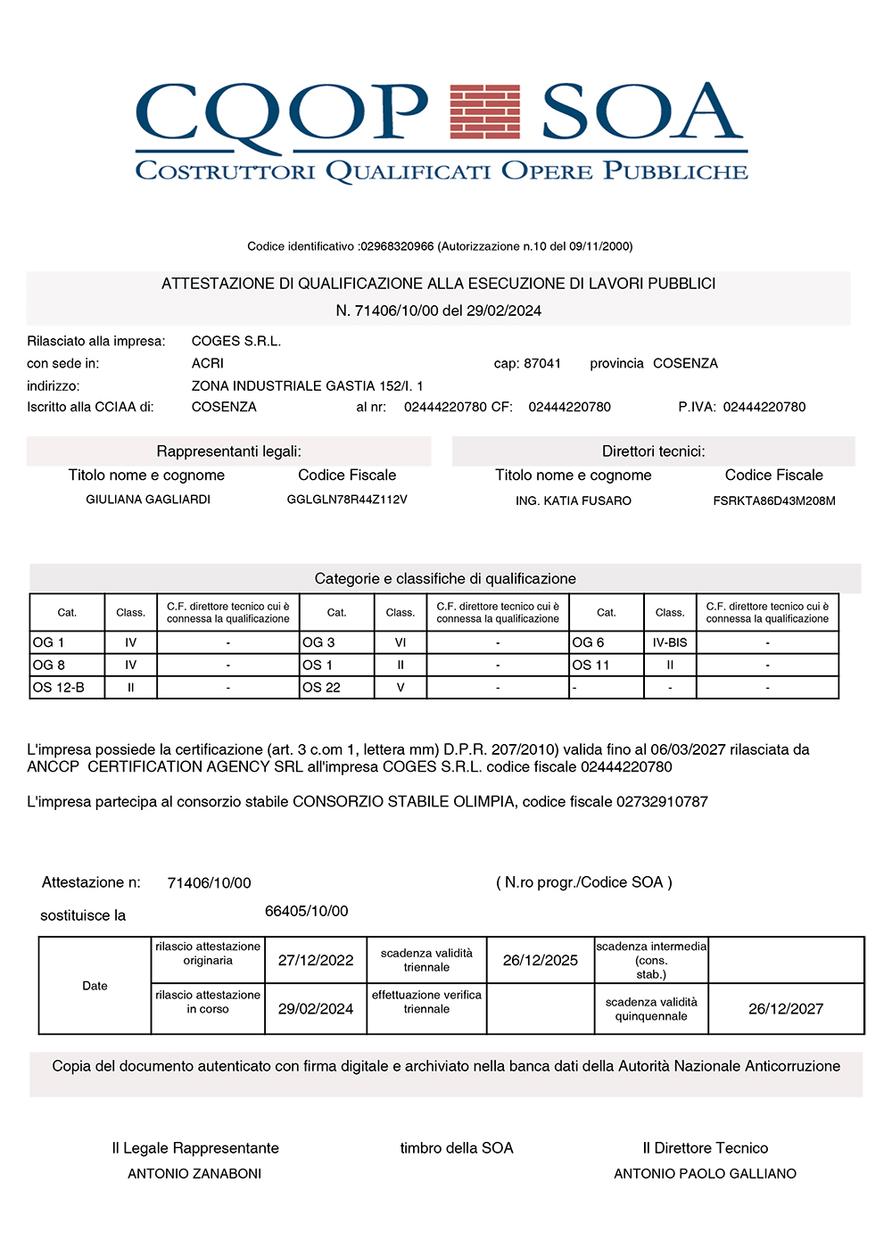 Certificato SOA