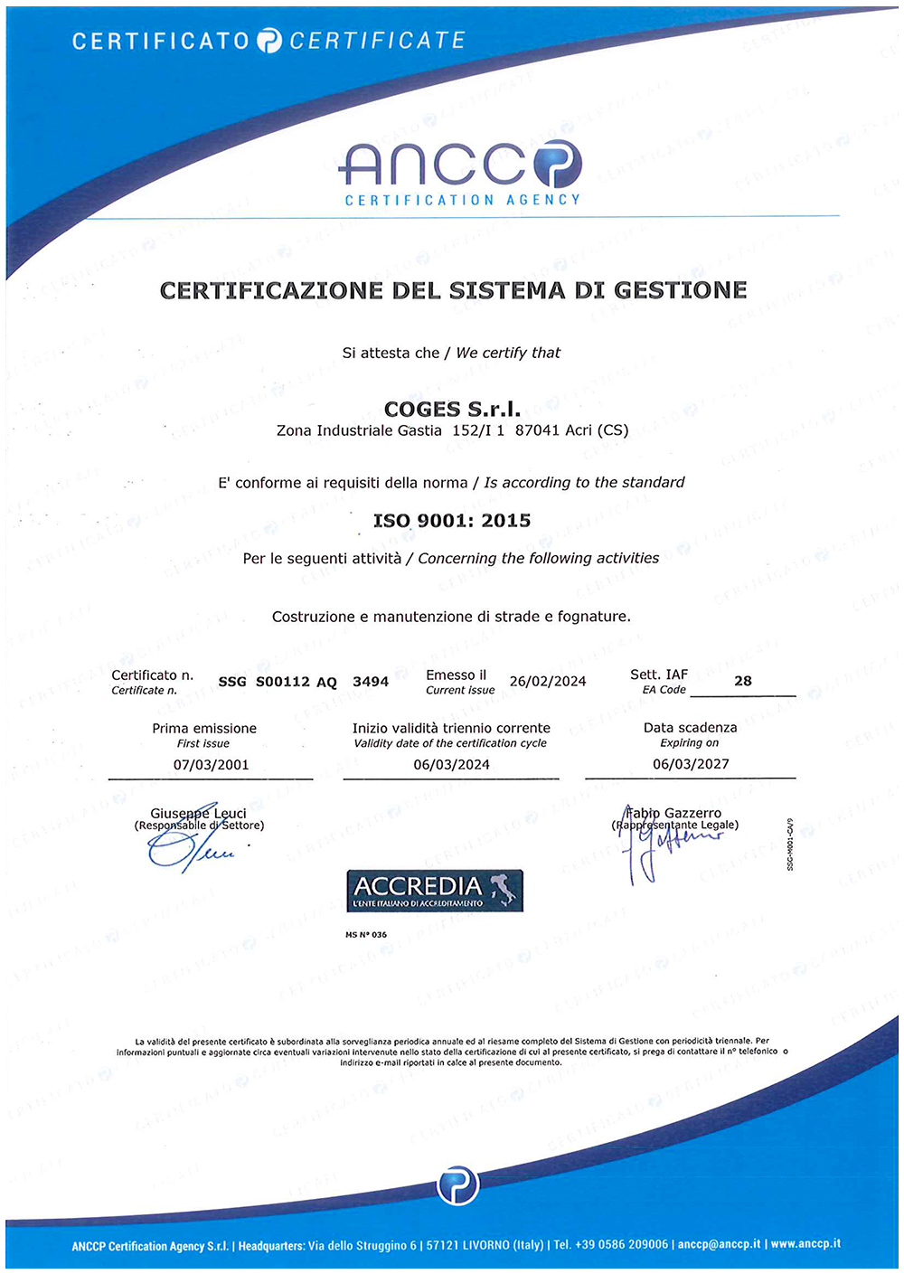 Certificato ISO
